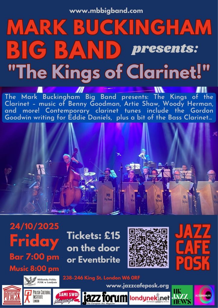 Znakomita orkiestra jazzowa The Mark Buckingham Big Band prezentuje: The Kings of the Clarinet – muzykę Benny'ego Goodmana, Artiego Shawa, Woody'ego Hermana i wielu innych gigantów ery swingu!