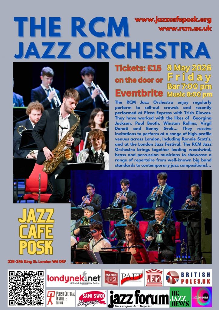 The Royal College of Music (RCM) is a world-leading conservatoire, renowned for excellence in music education, performance, and research. It offers undergraduate, postgraduate, and doctoral programs, nurturing exceptional talent across diverse musical disciplines. The College fosters creativity and innovation, with a vibrant calendar of performances, masterclasses, and festivals. Graduates from the RCM are to be found performing at the highest levels as soloists, composers and in ensembles around the world. The RCM Jazz Orchestra performs several concerts a year, including recent collaborations with Georgina Jackson, Ed Puddick and Trish Clowes, among others.
