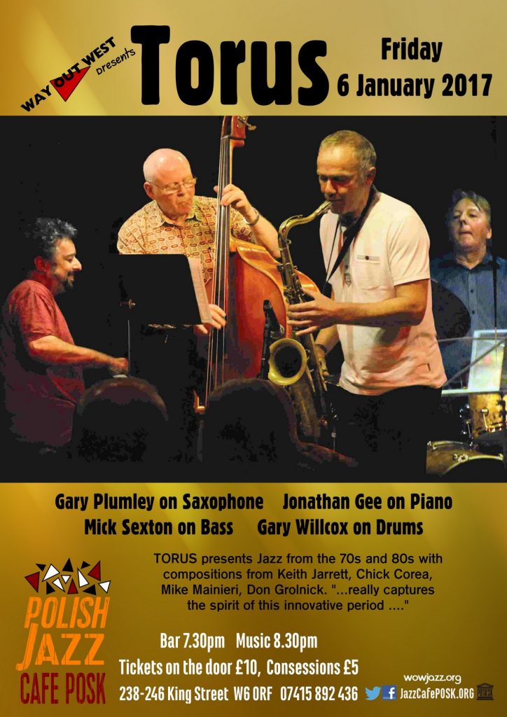 Torus to grupa z 30-letnimi tradycjami. Założona w 1980 roku przez kontrabasistę Mika Sextona zyskała niezwykłą popularność w latach 80-tych mając w swoim składzie najwybitniejszych muzyków jazzowych tamtej ery. Grupa Torus wznowiła działalność w lecie 2011 budując swój repertuar w oparciu o utwory tak znakomitych kompozytorów jak Mainieri, Grolnick, Brecker, Keith Jarrett i Chick Corea. Odrodzony zespół zaprezentował się w ubiegłym roku na koncercie w Jazz Café POSK z takim wigorem i inwencją muzyczną, że został zaproszony ponownie, gdyż prezentuje jazz z “najwyższej półki”.