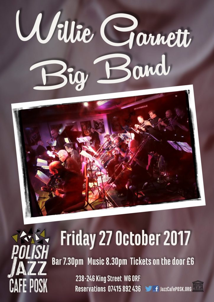 WILLIE GARNETT’S BIG BAND…. Undoubtedly one of the best British big bands led by veteran band leader Willie Garnett… Superb Musicians…Keeping the GREAT Classics ALIVE!… Great Crowd & Great Banter and a bargain price of £6!